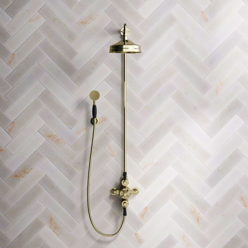Inspired by Edwardian period showerware, Ashbee and Stone offer this beautifully finished exposed dual outlet shower set in Gold.