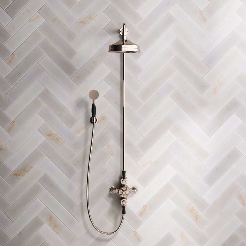 Inspired by Edwardian period showerware, Ashbee and Stone offer this beautifully finished exposed dual outlet shower set in Polished Nickel.