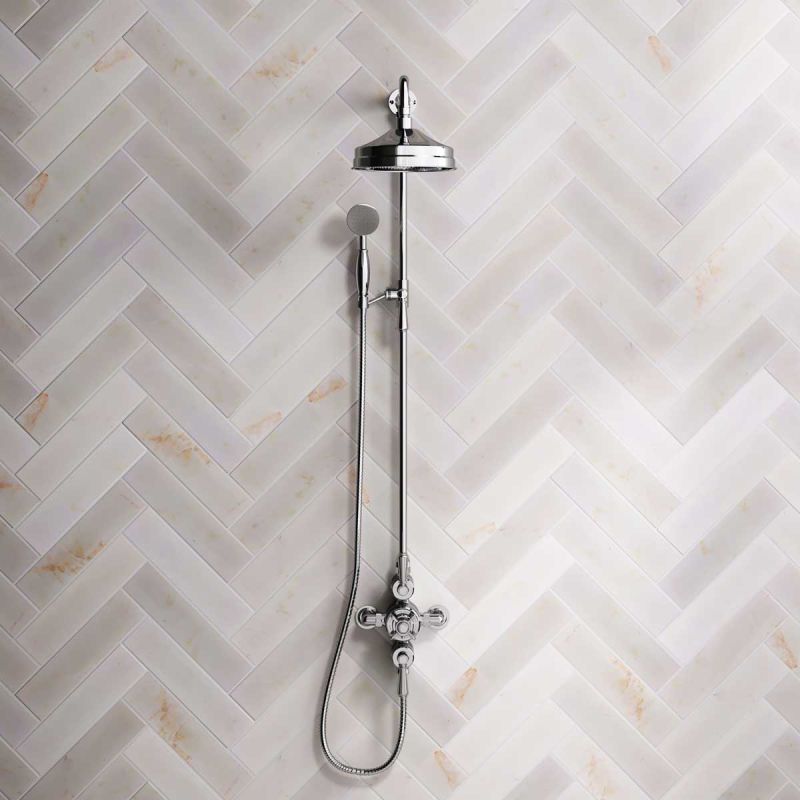 Inspired by Edwardian period showerware, Ashbee and Stone offer this beautifully finished exposed dual outlet shower set in Chrome Finish.