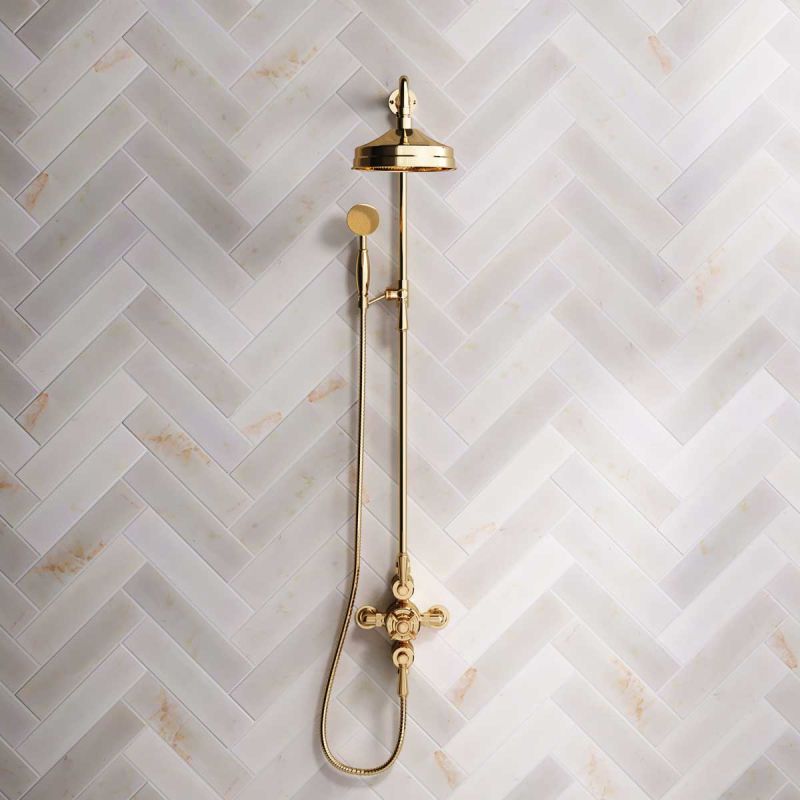 Inspired by Edwardian period showerware, Ashbee and Stone offer this beautifully finished exposed dual outlet shower set in Living Brass.