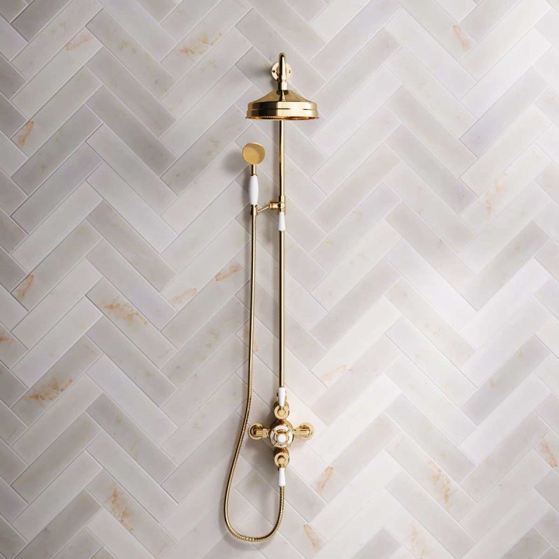 Inspired by Edwardian period showerware, Ashbee and Stone offer this beautifully finished exposed dual outlet shower set in Polished Brass.