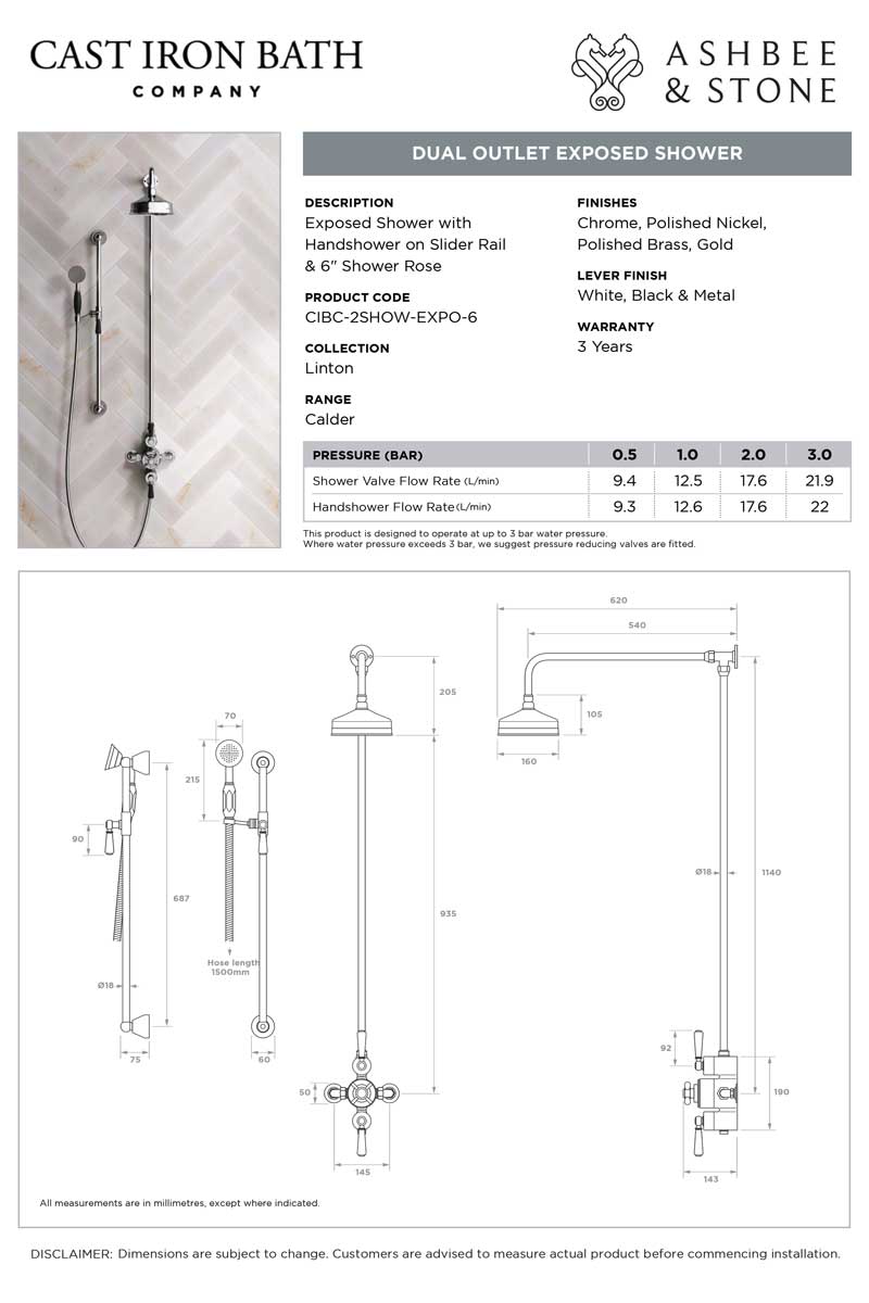 Inspired by Edwardian period showerware, Ashbee and Stone offer this beautifully finished exposed dual outlet shower set. Available in a choice of Chrome, Polished Nickel and Polished Brass finishes.