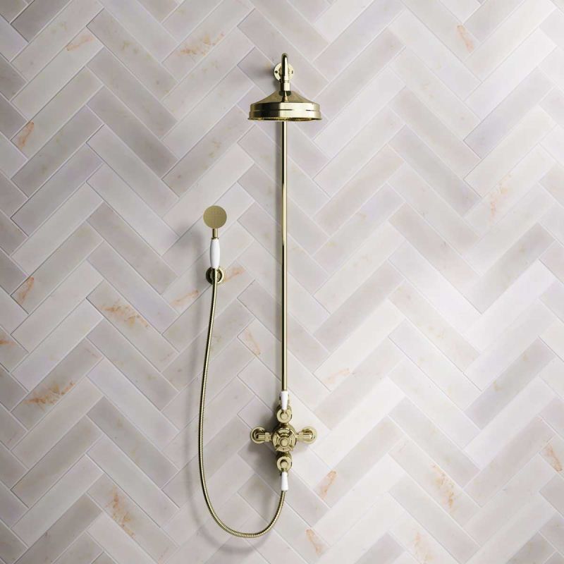 Inspired by Edwardian period showerware, Ashbee and Stone offer this beautifully finished exposed dual outlet shower set. Available in a choice of Chrome, Polished Nickel and Polished Brass finishes.