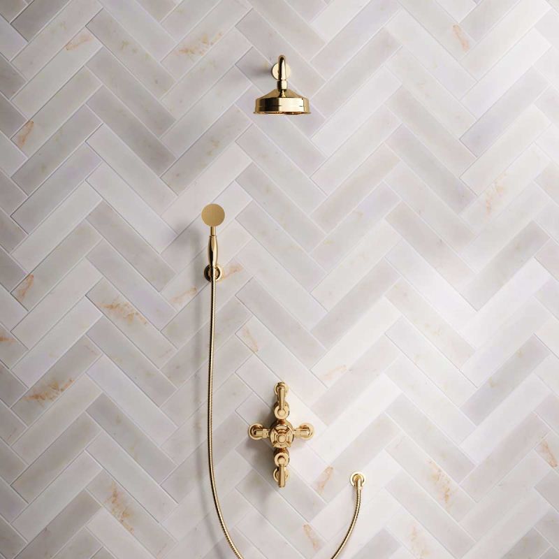Inspired by Edwardian period showerware, Ashbee and Stone offer this beautifully finished semi-exposed dual outlet shower set in Polished Brass.