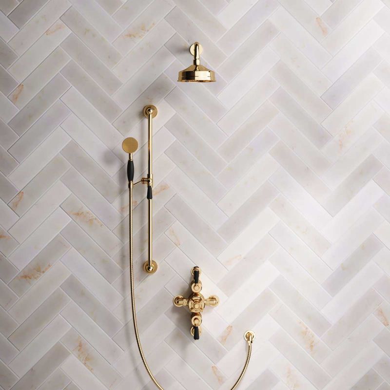 Inspired by Edwardian period showerware, Ashbee and Stone offer this beautifully finished semi-exposed dual outlet shower set in Polished Brass.