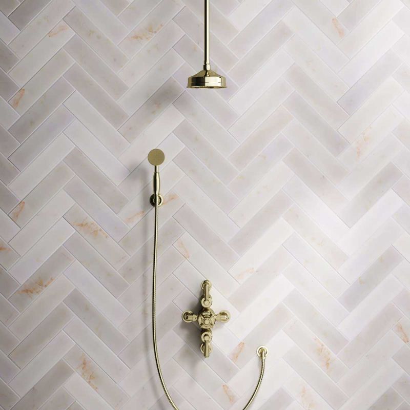 Inspired by Edwardian period showerware, Ashbee and Stone offer this beautifully finished semi-exposed dual outlet shower set in Gold.