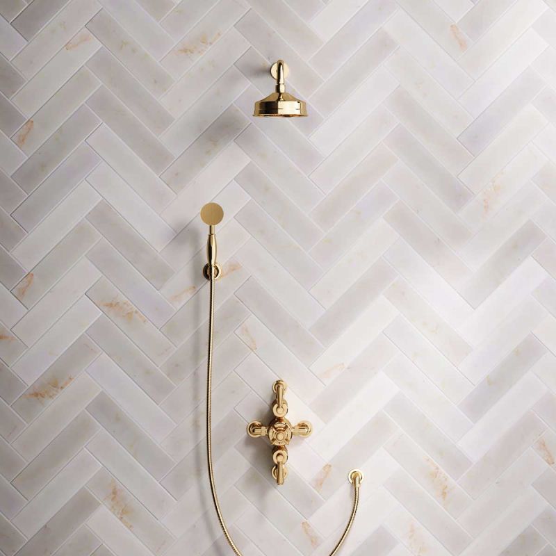 Inspired by Edwardian period showerware, Ashbee and Stone offer this beautifully finished semi-exposed dual outlet shower set in Living Brass.