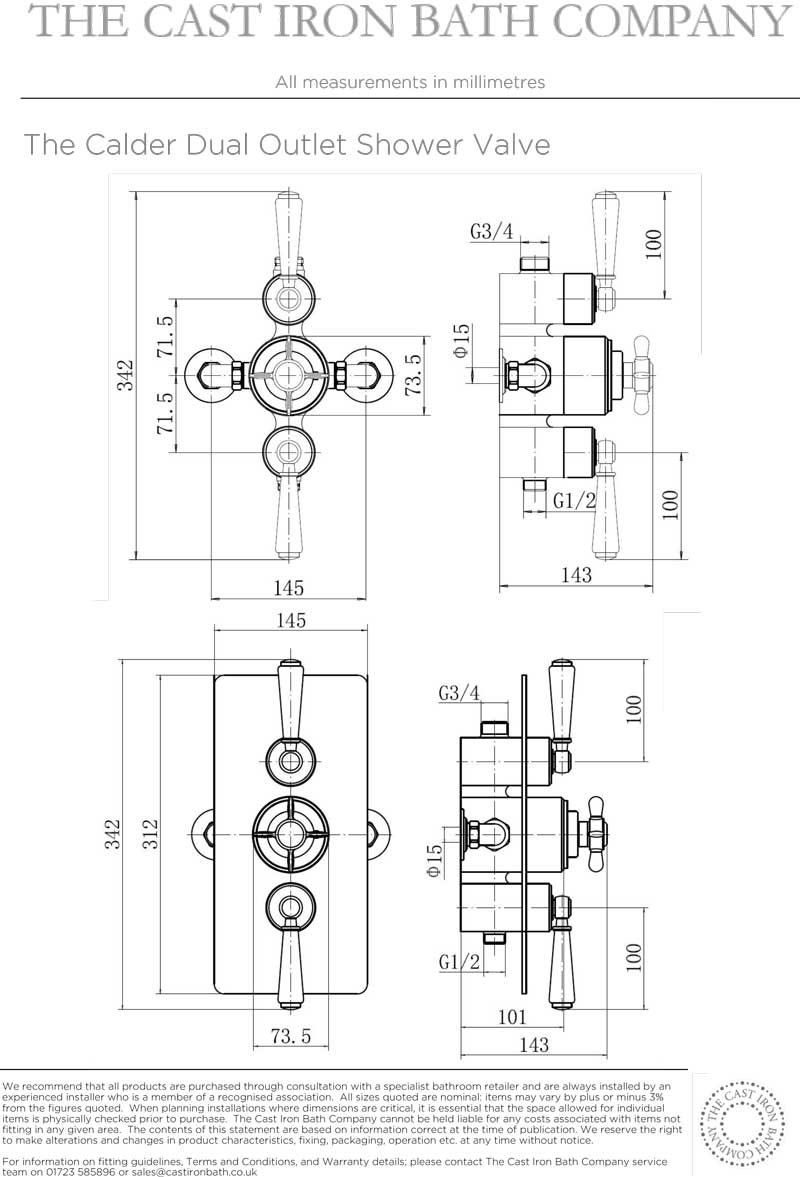 The valve, machined from solid brass, is fitted with a German engineered ceramic thermostatic cartridge, metal indicator bezel, cross head temperature controller, operation levers and is faced with brass cover plate. The shower set is completed with shower arm and 6 inch apron rainfall shower rose. The handshower is mounted onto a Slider-Rail. Matches perfectly with our Asygarth and Linton ranges of taps.