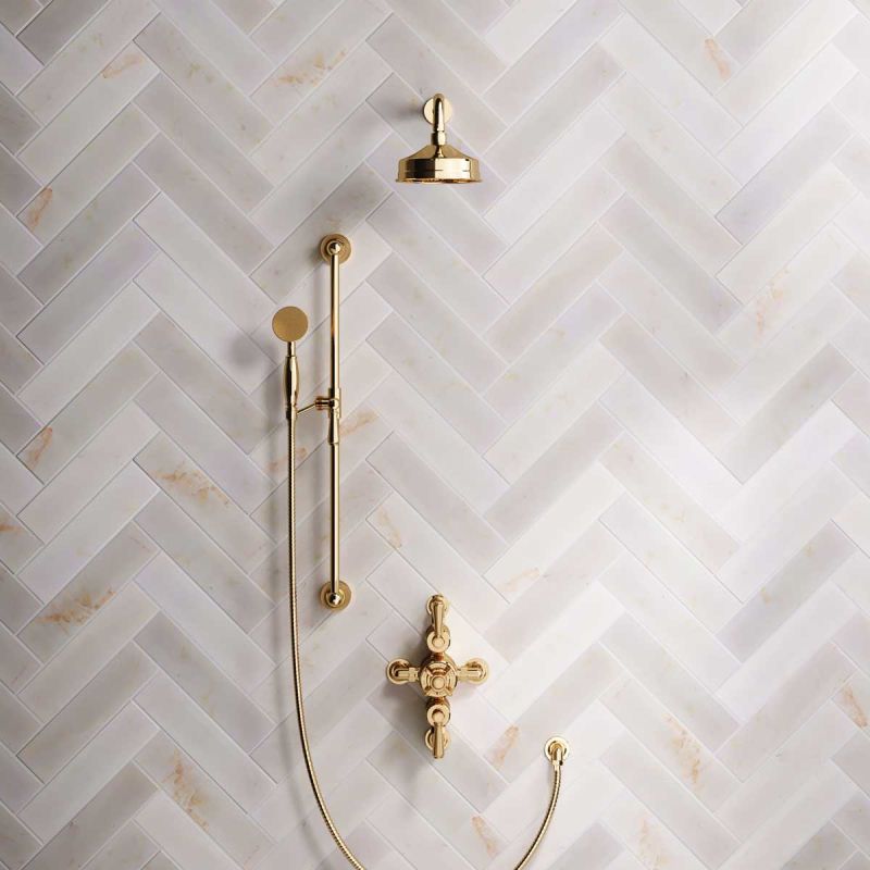 Inspired by Edwardian period showerware, Ashbee and Stone offer this beautifully finished semi-exposed dual outlet shower set in Polished Brass.