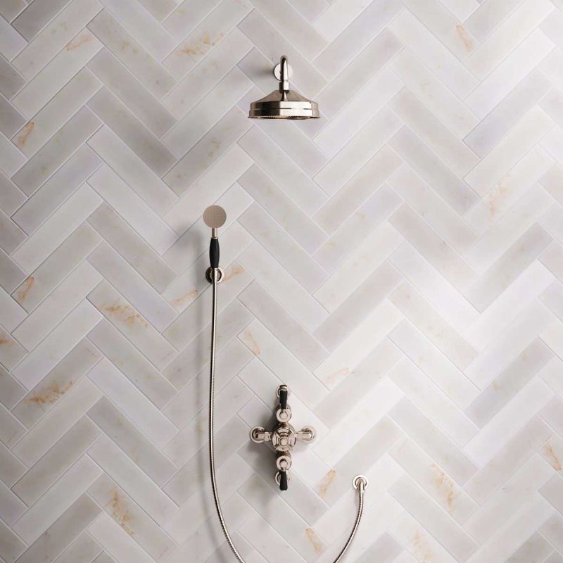 Inspired by Edwardian period showerware, Ashbee and Stone offer this beautifully finished semi-exposed dual outlet shower set in Polished Nickel.
