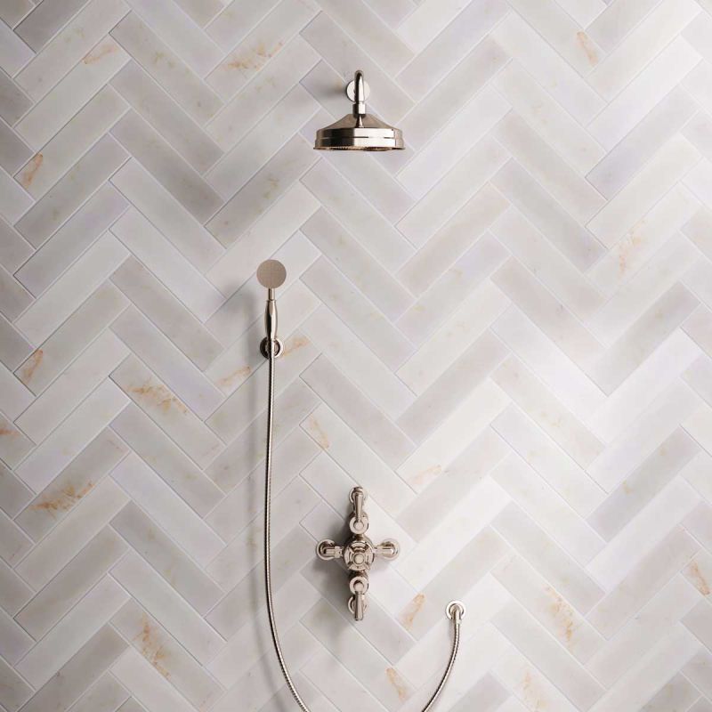 Inspired by Edwardian period showerware, Ashbee and Stone offer this beautifully finished semi-exposed dual outlet shower set in Polished Nickel.