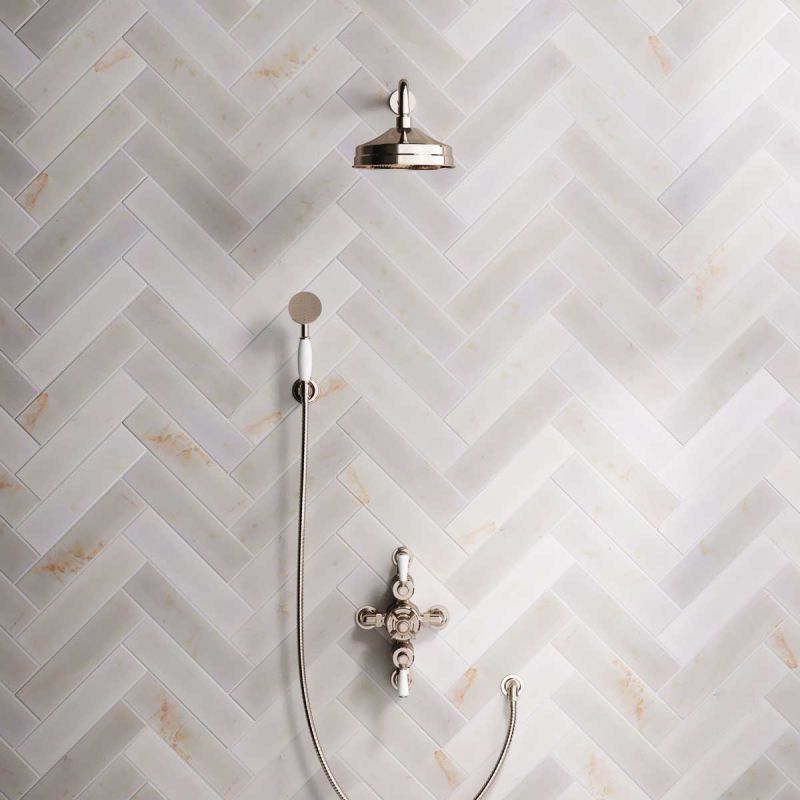 Inspired by Edwardian period showerware, Ashbee and Stone offer this beautifully finished semi-exposed dual outlet shower set in Polished Nickel.