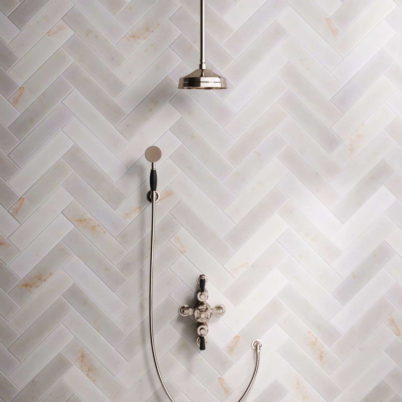 Inspired by Edwardian period showerware, Ashbee and Stone offer this beautifully finished semi-exposed dual outlet shower set in Polished Nickel.