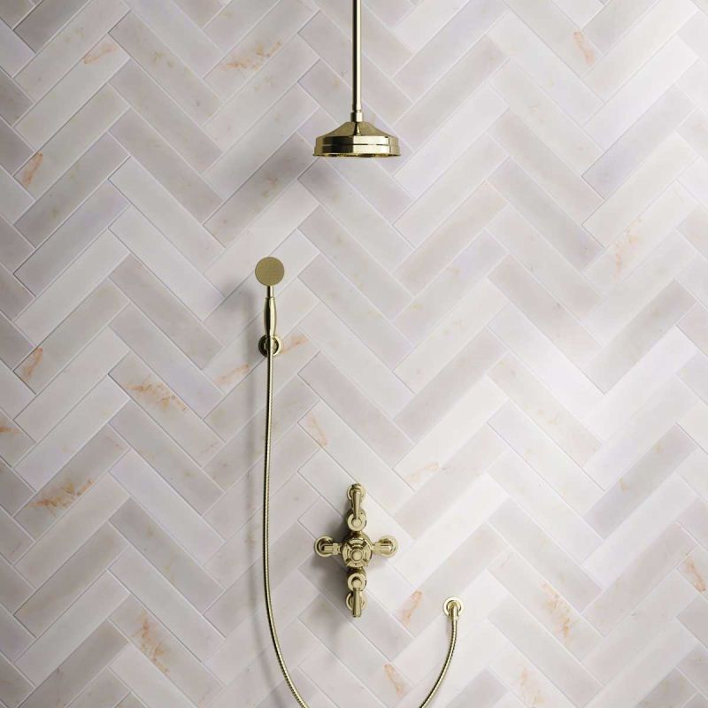 Inspired by Edwardian period showerware, Ashbee and Stone offer this beautifully finished semi-exposed dual outlet shower set in Gold.