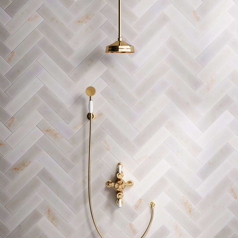 Inspired by Edwardian period showerware, Ashbee and Stone offer this beautifully finished semi-exposed dual outlet shower set in Living Brass.