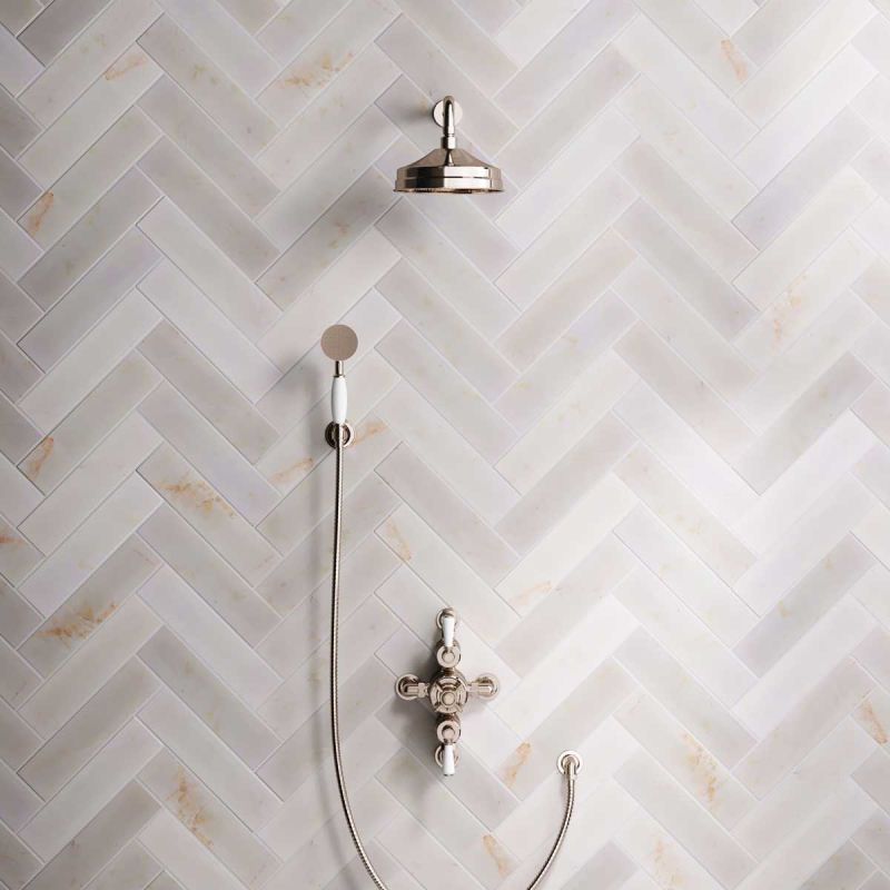 Inspired by Edwardian period showerware, Ashbee and Stone offer this beautifully finished semi-exposed dual outlet shower set in Polished Nickel.