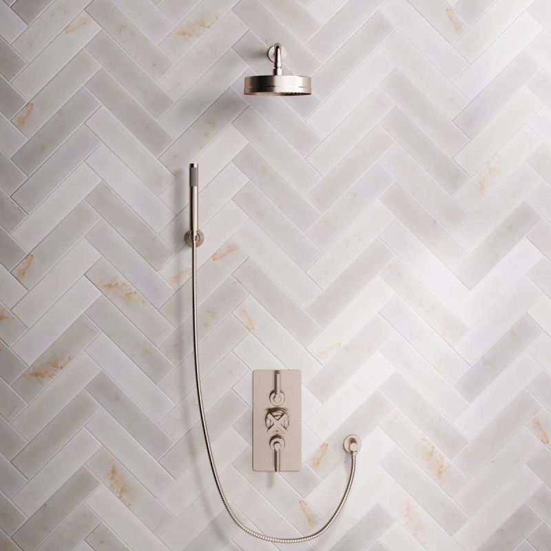 Elbe Dual Outlet Shower Kit - Concealed Valve - Brushed Nickel Lever - Handshower Hook - Brushed Nickel