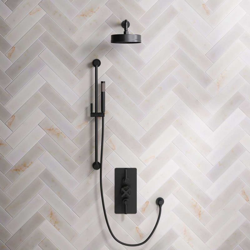 Elbe Dual Outlet Shower Kit - Concealed Valve - Matt Black Lever - Handshower Slider-Rail - Matt Black