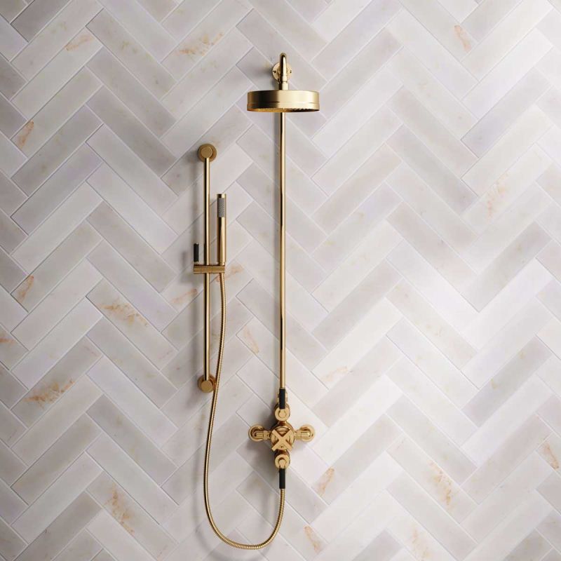 The dual outlet valve provides a handshower feed with options for black ceramic, white ceramic and solid engineered brass lever options, and in chrome, brushed nickel, brushed brass finishes, polished brass and matt black.