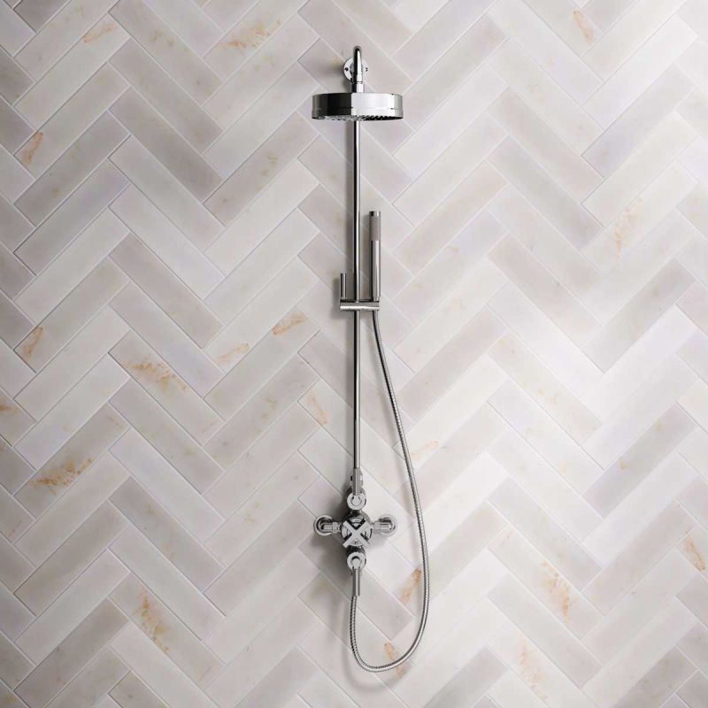 The dual outlet valve provides a handshower feed with options for black ceramic, white ceramic and solid engineered brass lever options, and in chrome, brushed nickel, brushed brass finishes, polished brass and matt black.