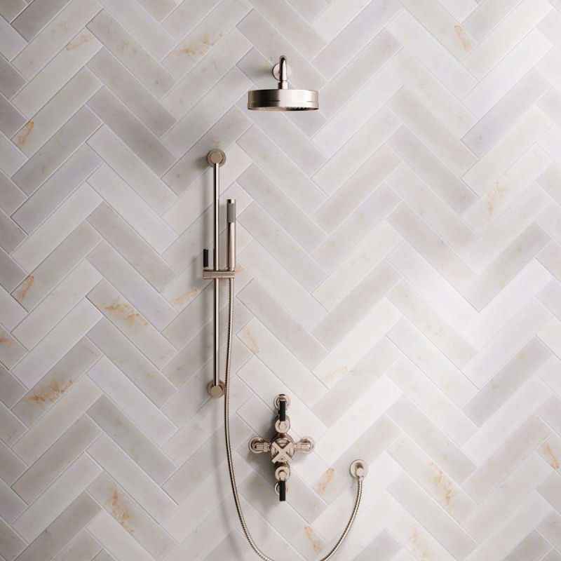 The dual outlet valve provides a handshower feed with options for black ceramic, white ceramic and solid engineered brass lever options, and in chrome, brushed nickel, brushed brass finishes, polished brass and matt black.