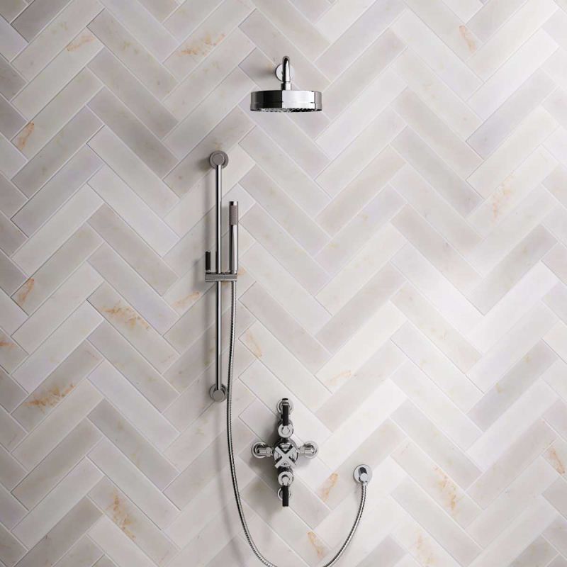 Elbe Dual Outlet Shower Kit - Semi-Exposed Valve - Black Ceramic Lever - Handshower Slider-Rail - Chrome Finish