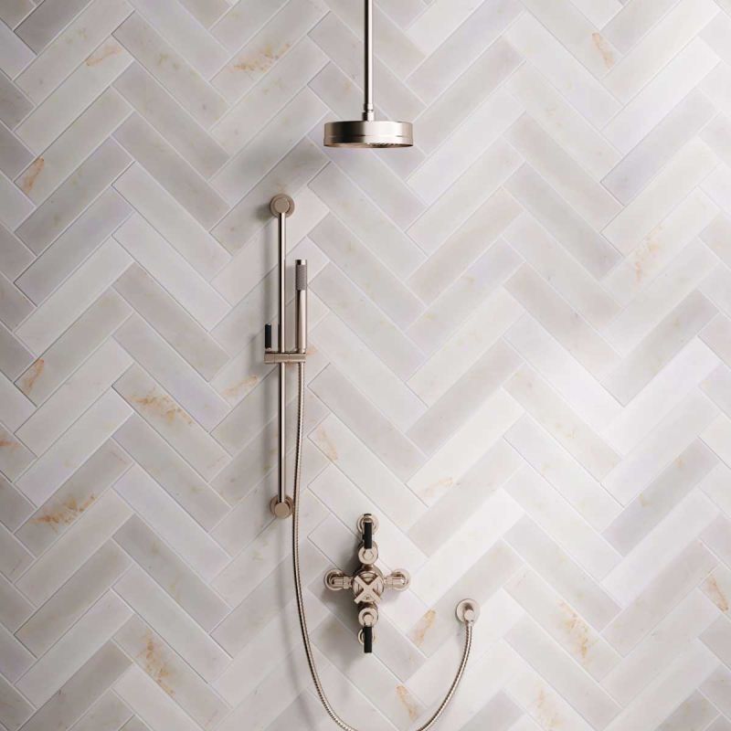 The dual outlet valve provides a handshower feed with options for black ceramic, white ceramic and solid engineered brass lever options, and in chrome, brushed nickel, brushed brass finishes, polished brass and matt black.