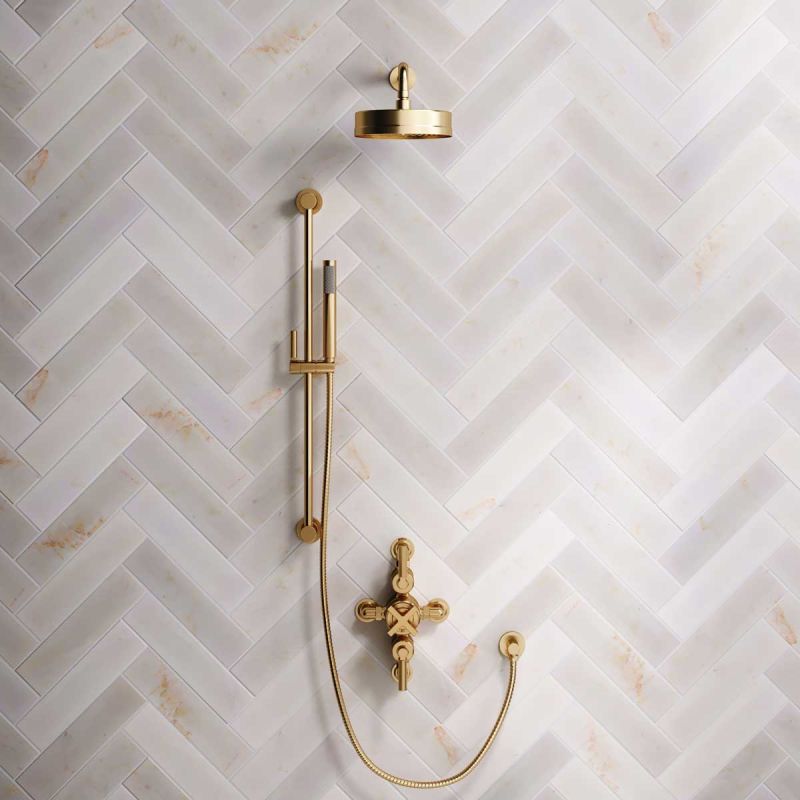 The dual outlet valve provides a handshower feed with options for black ceramic, white ceramic and solid engineered brass lever options, and in chrome, brushed nickel, brushed brass finishes, polished brass and matt black.