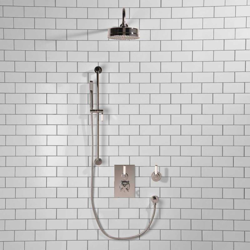 Elbe - Concealed Shower Set + Diverter - 500mm Shower Arm - White Lever/White Lever - 8 inch Rose - Chrome (Min 2 Bar Pressure)