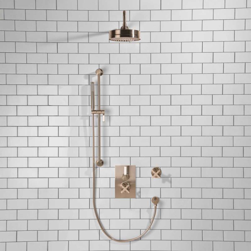 Elbe - Concealed Shower Set + Diverter - 500mm Shower Arm - White Lever/X-Top - 8 inch Rose - Brushed Nickel (Min 2 Bar Pressure)