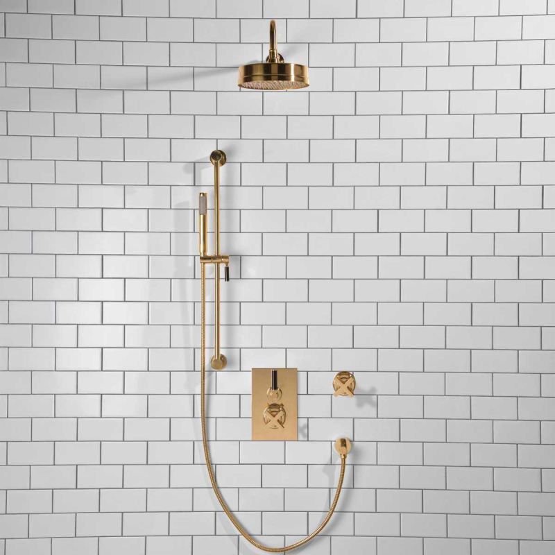 Elbe - Concealed Shower Set + Diverter - Black Lever/X-Top - 8 inch Rose - Polished Brass (Min 2 Bar Pressure)