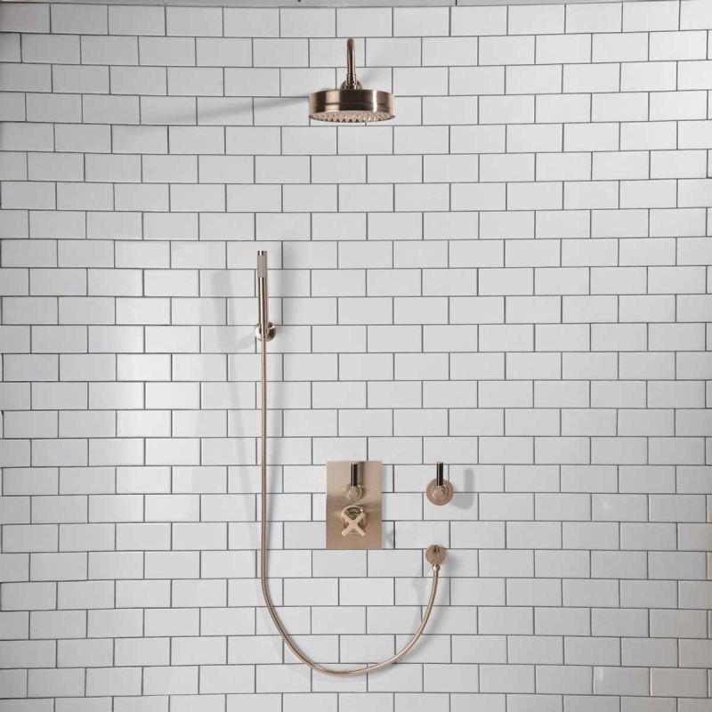 Elbe - Concealed Shower Set + Diverter - Hook Mount - 500mm Shower Arm - Black Lever/Black Lever - 8 inch Rose - Brushed Nickel (Min 2 Bar Pressure)