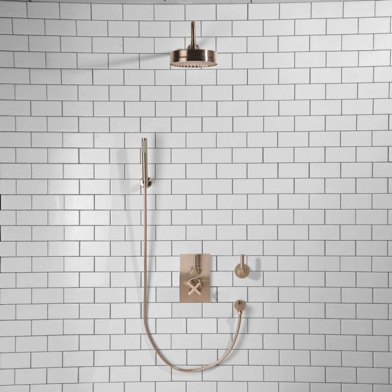 Elbe - Concealed Shower Set + Diverter - Hook Mount - 500mm Shower Arm - Metal Lever/Metal Lever - 8 inch Rose - Brushed Nickel (Min 2 Bar Pressure)