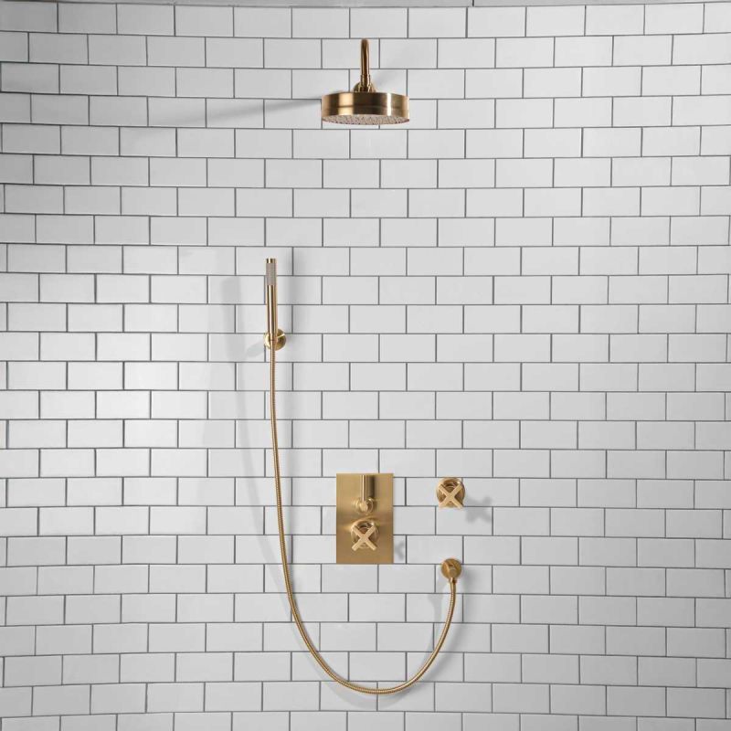 Elbe - Concealed Shower Set + Diverter - Hook Mount - 500mm Shower Arm - Metal Lever/X-Top - 8 inch Rose - Brushed Brass (Min 2 Bar Pressure)