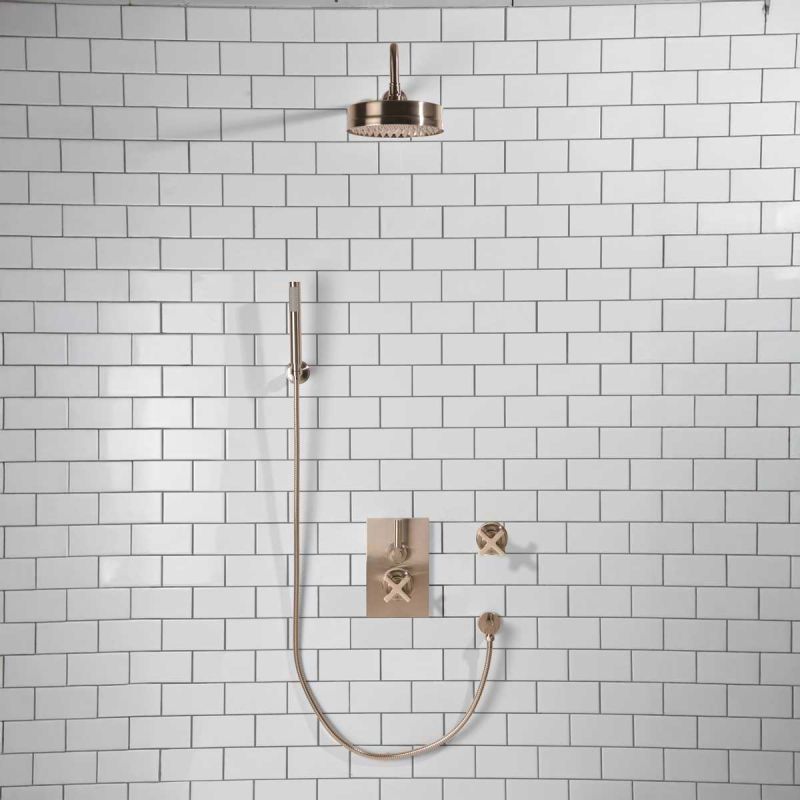 Elbe - Concealed Shower Set + Diverter - Hook Mount - 500mm Shower Arm - Metal Lever/X-Top - 8 inch Rose - Brushed Nickel (Min 2 Bar Pressure)