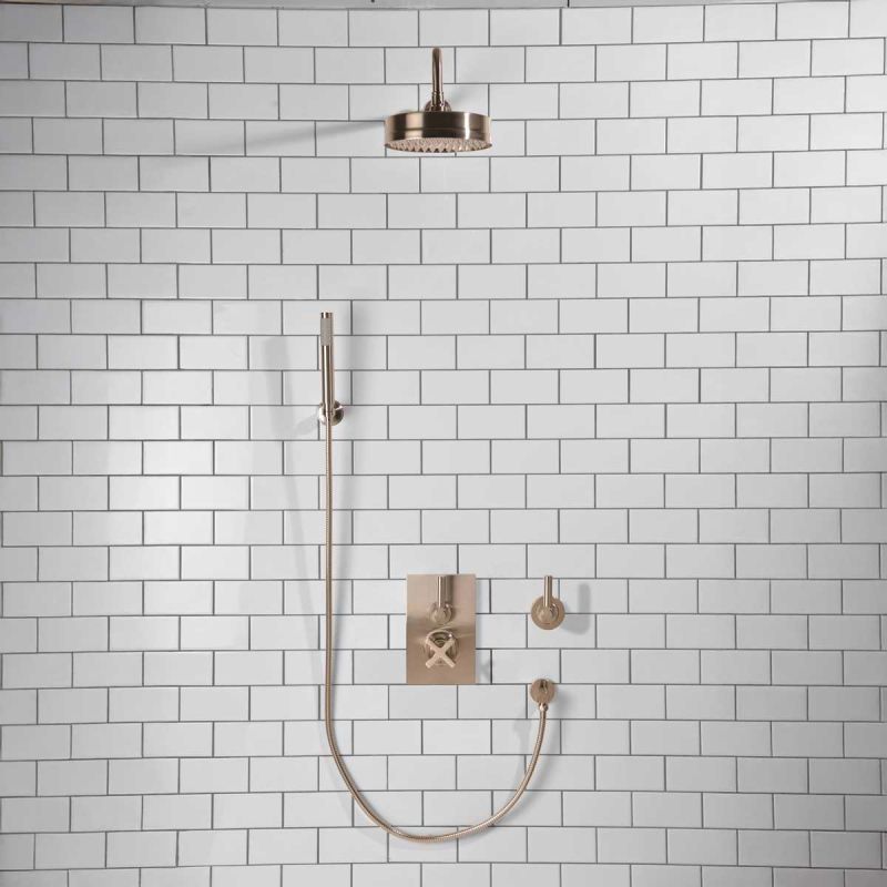 Elbe - Concealed Shower Set + Diverter - Hook Mount - Metal Lever/Metal Lever - 8 inch Rose - Brushed Nickel (Min 2 Bar Pressure)