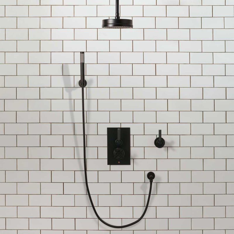 Elbe - Concealed Shower Set + Diverter - Hook Mount - Metal Lever/Metal Lever - 8 inch Rose - Ceiling Mounted Rose - Matt Black (Min 2 Bar Pressure)