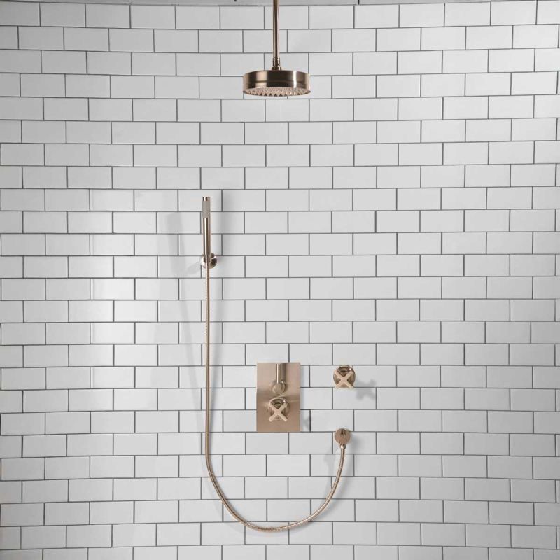 Elbe - Concealed Shower Set + Diverter - Hook Mount - Metal Lever/X-Top - 8 inch Rose - Ceiling Mounted Rose - Brushed Nickel (Min 2 Bar Pressure)