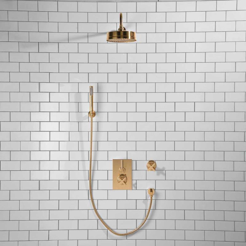 Elbe - Concealed Shower Set + Diverter - Hook Mount - Metal Lever/X-Top - 8 inch Rose - Polished Brass (Min 2 Bar Pressure)