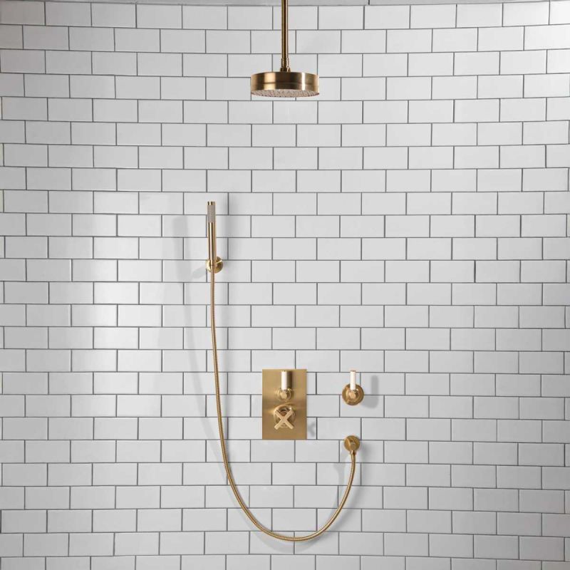 Elbe - Concealed Shower Set + Diverter - Hook Mount - White Lever/White Lever - 8 inch Rose - Ceiling Mounted Rose - Brushed Brass (Min 2 Bar Pressure)