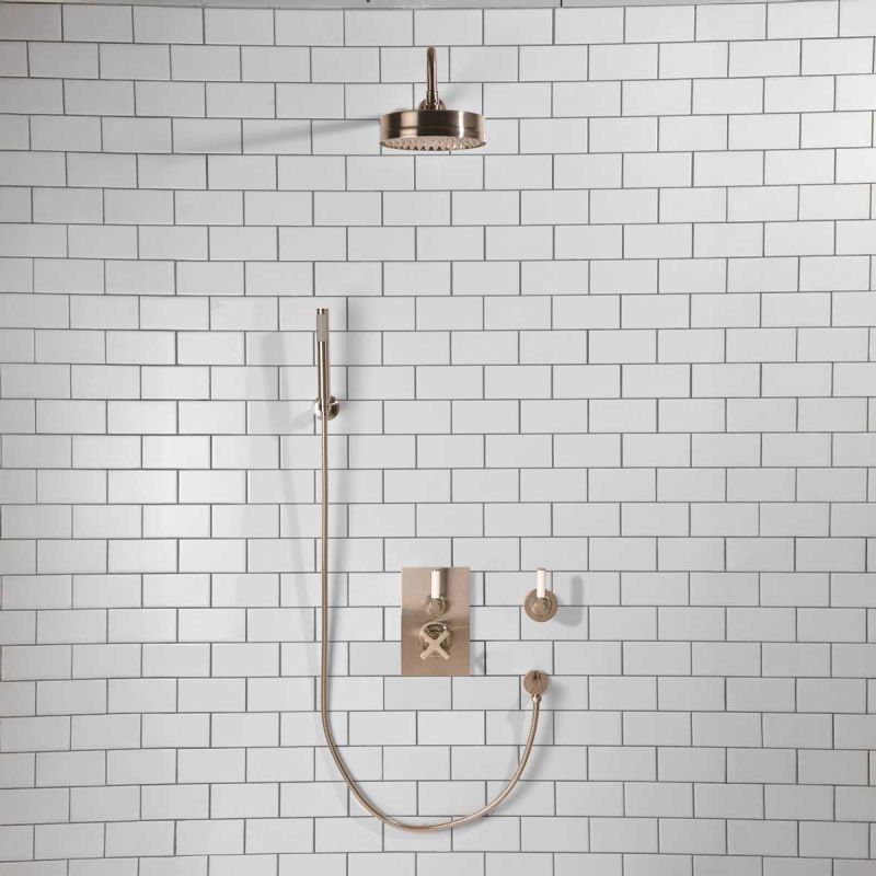 Elbe - Concealed Shower Set + Diverter - Hook Mount - White Lever/White Lever - 8 inch Rose - Brushed Nickel (Min 2 Bar Pressure)