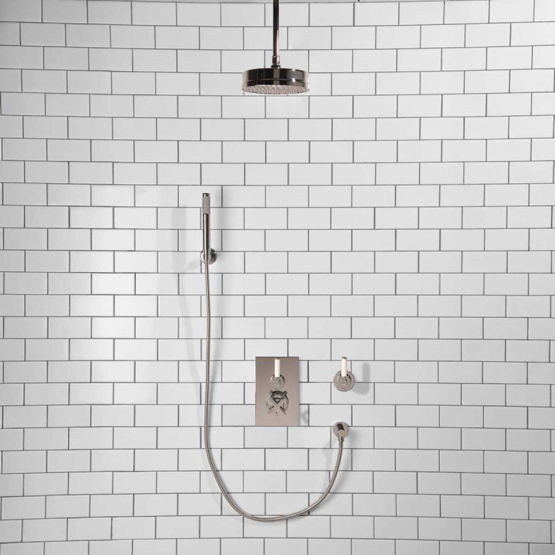 Elbe - Concealed Shower Set + Diverter - Hook Mount - White Lever/White Lever - 8 inch Rose - Ceiling Mounted Rose - Chrome Finish (Min 2 Bar Pressure)