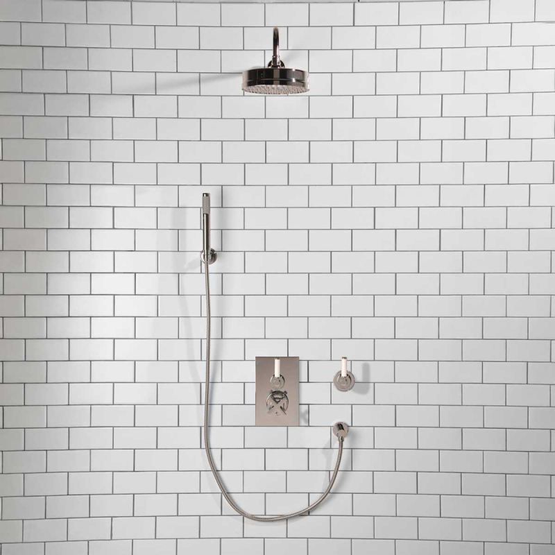 Elbe - Concealed Shower Set + Diverter - Hook Mount - White Lever/White Lever - 8 inch Rose - Chrome (Min 2 Bar Pressure)