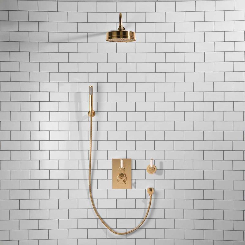 Elbe - Concealed Shower Set + Diverter - Hook Mount - White Lever/White Lever - 8 inch Rose - Polished Brass (Min 2 Bar Pressure)