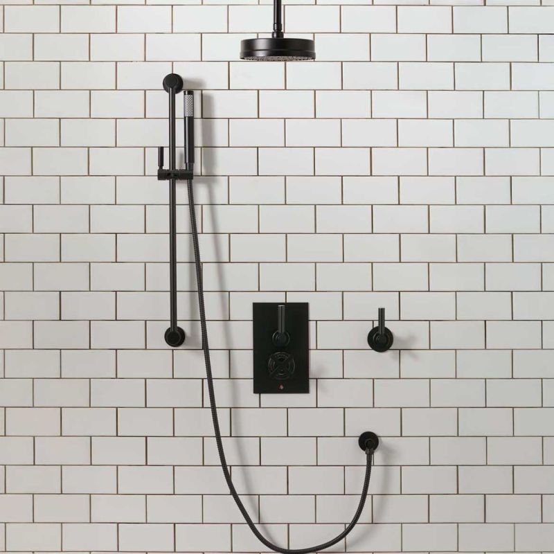 Elbe - Concealed Shower Set + Diverter - Metal Lever/Metal Lever - 8 inch Rose - Ceiling Mounted Rose - Matt Black (Min 2 Bar Pressure)