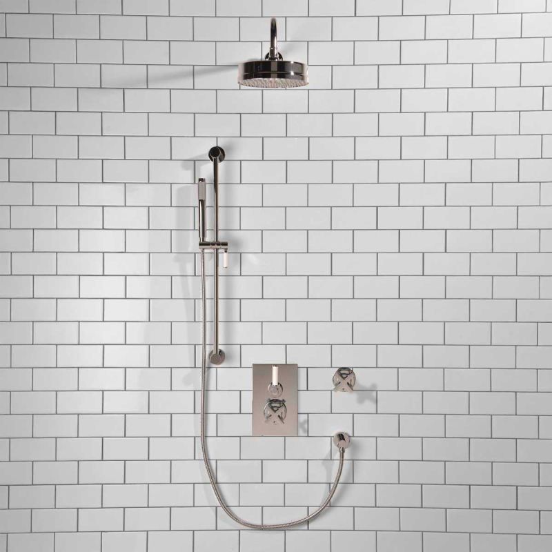 Elbe - Concealed Shower Set + Diverter - White Lever/X-Top - 8 inch Rose - Chrome (Min 2 Bar Pressure)