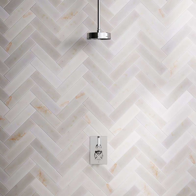 Elbe - Concealed Shower Set - White Lever - 8 inch Rose - Ceiling Mounted Rose - Chrome Finish