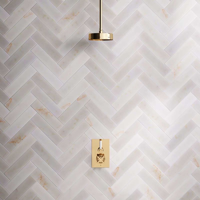 Elbe - Concealed Shower Set - White Lever - 8 inch Rose - Ceiling Mounted Rose - Polished Brass