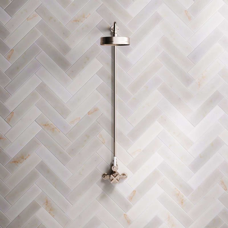 Elbe Exposed Shower Valve with Rigid Riser and 8 Inch Rose - White Lever - Brushed Nickel
