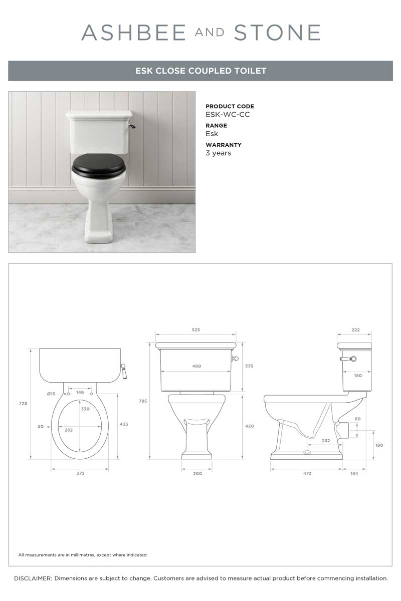 Elevate your bathroom with the timeless sophistication of the Esk Close Coupled Toilet - a beautifully crafted fixture that blends classic heritage design with contemporary craftsmanship. With its refined silhouette and traditional ceramic lever flush, the Esk offers a statement of understated luxury and period charm.